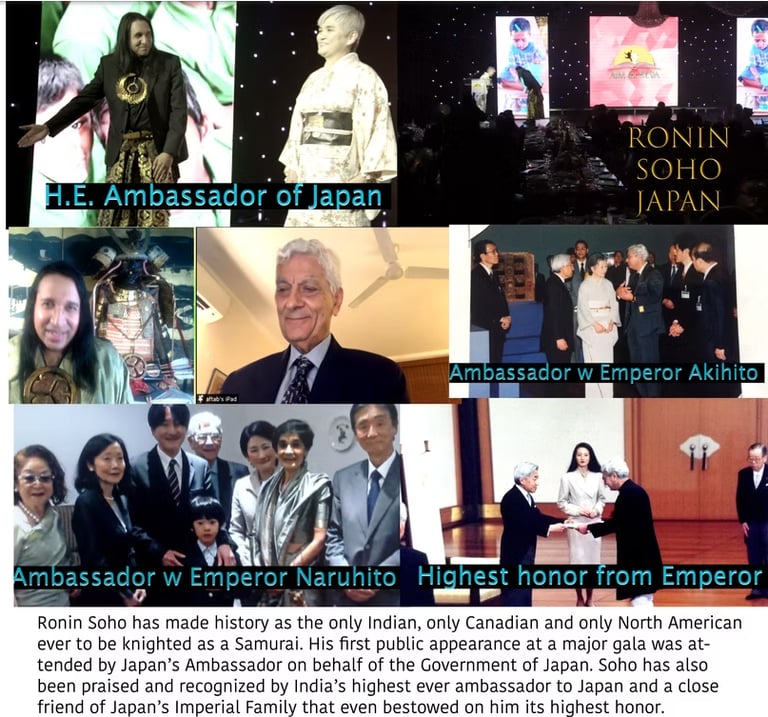 浪人蘇峰氏は、オリンピックや米国議会から、天皇陛下の親しい友人を含む日本外務省の公式行事まで、世界最大級のフォーラムで日本の武士道の芸術、文化、映画、ファッション、博物館、大和仏教を宣伝する世界で唯一の人物です。さらに、蘇峰氏は、米国、カナダ、インド、イスラエル政府の公式行事でサムライ文化を宣伝する世界で唯一の人物です。大和文化への浪人蘇峰氏の比類なき貢献を称え、徳川家から日本刀を授与され、サムライとしてナイトの称号を授与された唯一の北米人となりました。このように蘇峰氏は、比類なき武士道と日本の大和魂文化と遺産を世界規模で宣伝、保存し、日本の若者に大和仏教と神道に基づく祖先の伝統に誇りを持つように教えることに生涯を捧げてきました。