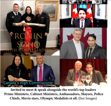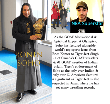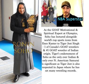 Soho is also the only North American ever to be knighted as a Samurai and has represented the Bushido at the world's biggest forums including the Olympics, US Congress, Pan-American Games, Righteous Among the Nations and the Government of India's Independence Day Tribute in association with experts from Harvard, BBC and CNN -- as well as at charities endorsed by superstars Lily Singh, Amitabh Bachchan, P.V. Sindhu and Preeti Zinta among others. Soho's Museum has the most important private collection of Samurai and Buddhist treasures in the world and his Exhibit Enlightenment -- sponsored by the Government of Canada and attended by high diplomats from Japan, India, Netherlands and Royal Family was called "the biggest Asian art exhibit of its kind ever held in Canada". Empowered by the estates of Pan-Asian Japanese icons linked to the Tokugawa clan, Soho is also engaged in promoting Japan-Korean relations and preserving the Tang Buddhist heritage of Japan, Korea, China and all of East Asia -- as mandated by Shoguns Ieyasu and Iiemitsu. More information at RoninSoho.org