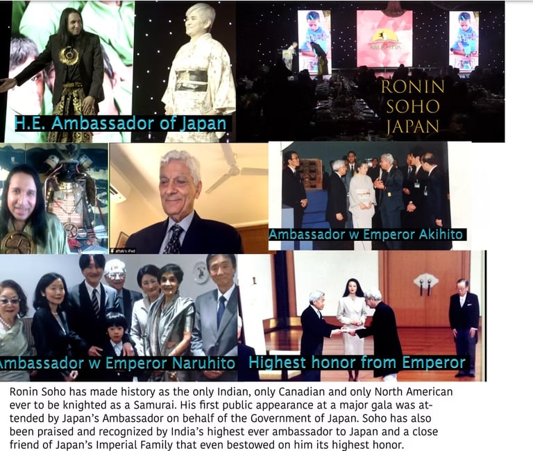 浪人蘇峰氏は、オリンピックや米国議会から、天皇陛下の親しい友人を含む日本外務省の公式行事まで、世界最大級のフォーラムで日本の武士道の芸術、文化、映画、ファッション、博物館、大和仏教を宣伝する世界で唯一の人物です。さらに、蘇峰氏は、米国、カナダ、インド、イスラエル政府の公式行事でサムライ文化を宣伝する世界で唯一の人物です。大和文化への浪人蘇峰氏の比類なき貢献を称え、徳川家から日本刀を授与され、サムライとしてナイトの称号を授与された唯一の北米人となりました。このように蘇峰氏は、比類なき武士道と日本の大和魂文化と遺産を世界規模で宣伝、保存し、日本の若者に大和仏教と神道に基づく祖先の伝統に誇りを持つように教えることに生涯を捧げてきました。