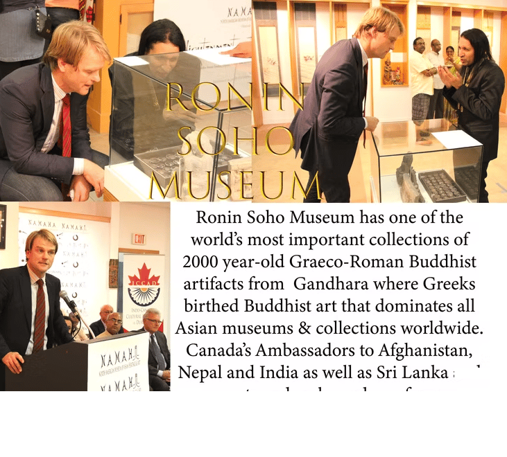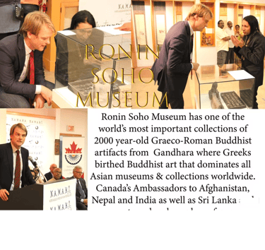 In addition, the Soho Museum is one of the only Museums to house the actual relics of the Buddha in 2000 year old stupas from Gandhara -- and has organized the biggest Asian Art Exhibits sponsored by the Government of Canada and praised by the Governments of Japan and India -- as well as Lt. Governors on behalf of the Royal Family of England. The museum also has artworks from China, Tibet and Sri Lanka to link the various Buddhist nations of the world.