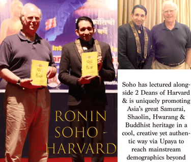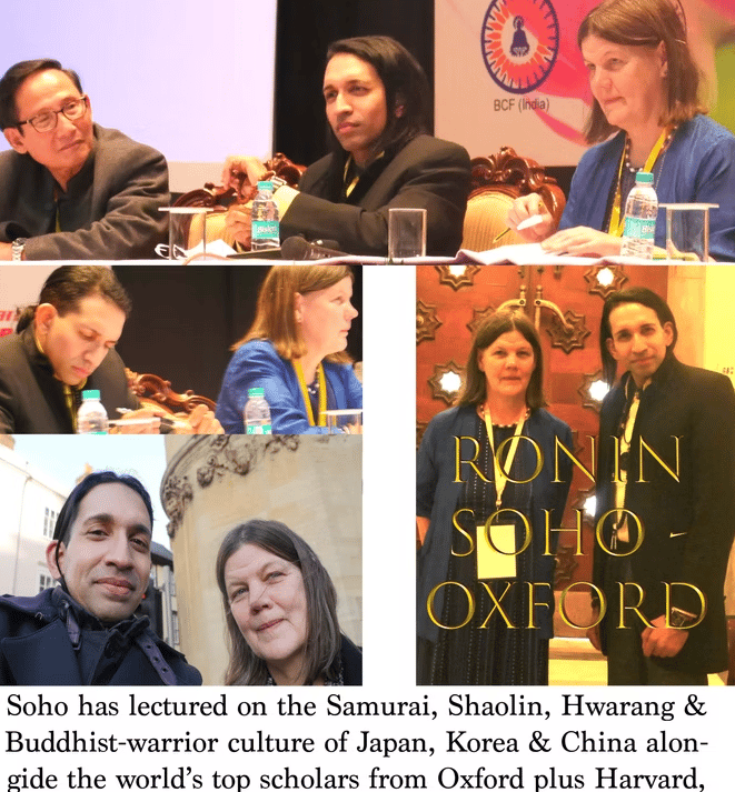 ローニン・ソーホー氏は、ハーバード大学やオックスフォード大学といった世界的に著名な大学をはじめ、トロント大学、東京大学、香港大学、ジョージ・ワシントン大学、国立台湾大学、北京大学などにおいて、世界的に著名な学者らと共に武士道と大和仏教について講義を行ってきました。ある有名新聞はソーホー氏とハーバード大学のクリス・クイーン教授について記事を掲載し、ソーホー氏を「世界中を旅して平和を訴える、日本仏教と武士道の世界的に著名な権威。世界が彼の話に耳を傾けている」と評しました。ソーホー氏はまた、ナグプール大学から傑出した思想家賞を受賞し、カナダのトロント大学に招かれ、侍文化、芸術、仏教、衣装に関する本格的な講義を行いました。